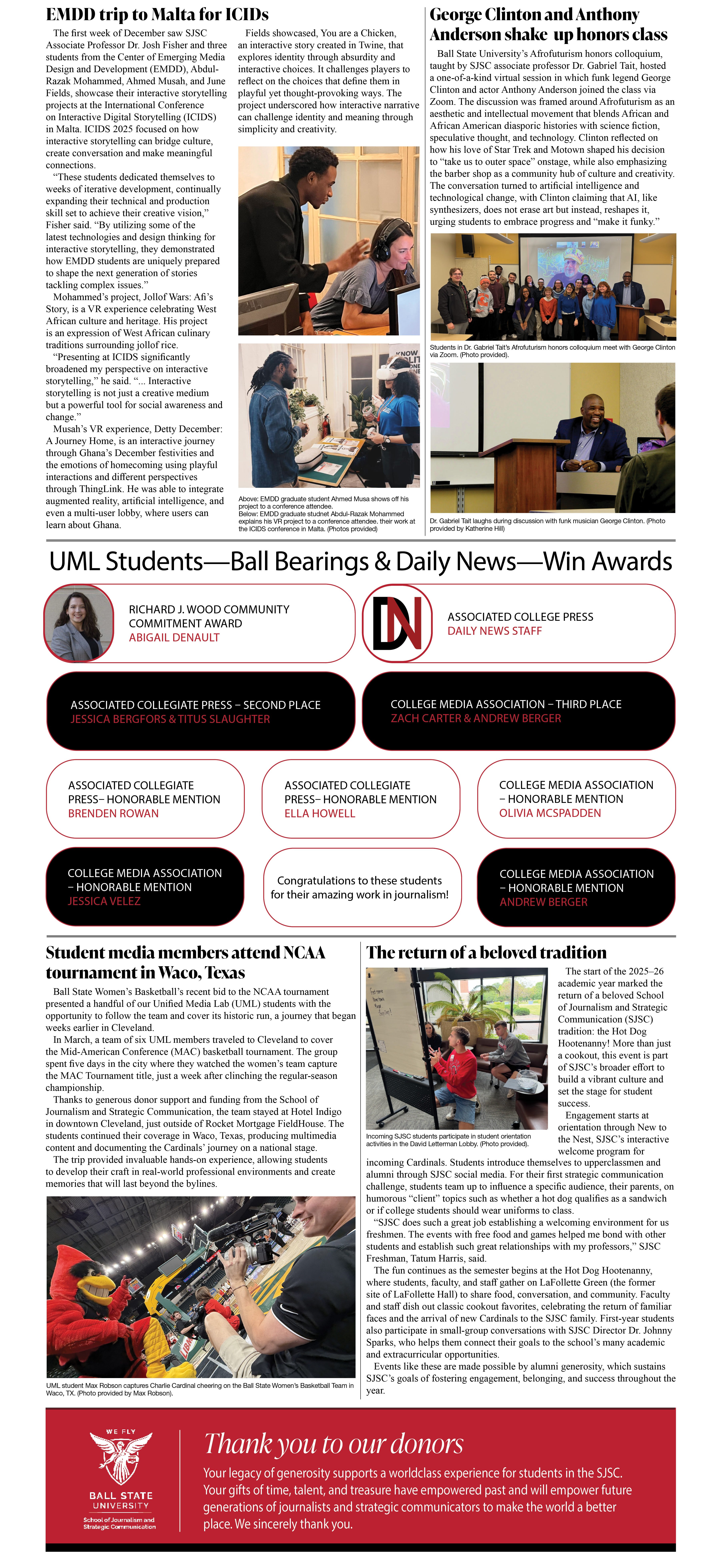On this One Ball State Day, please consider supporting our amazing students by donating to one of our funds! Follow the success of the School of Journalism and Strategic Communication’s students, faculty, and alumni on our social media channels.
