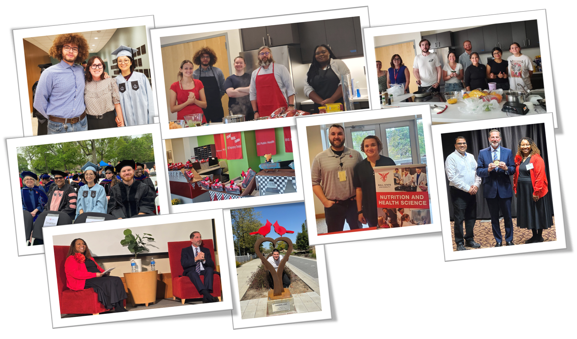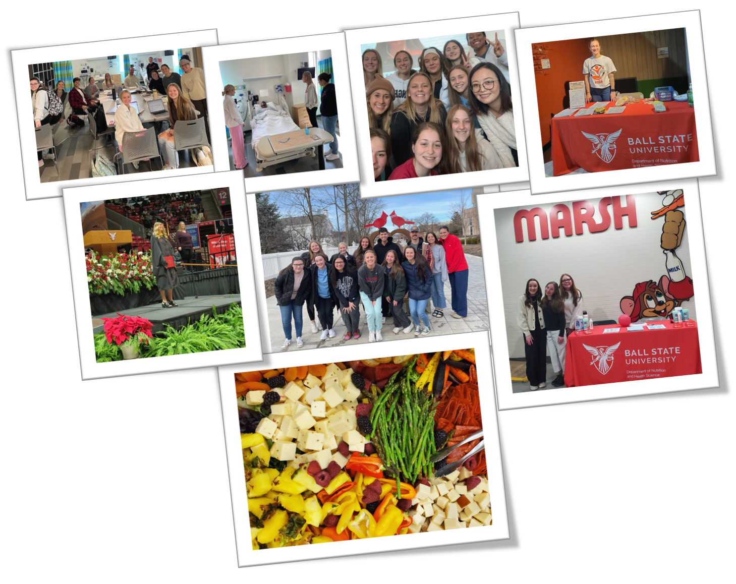 Students in our department join in extracurricular career-relevant activities through the Ball State Dietetics Association, the Eta Sigma Gamma Health Education Honorary Society and the Respiratory Therapy club. The collegial faculty and staff are also active on campus and support athletic events, Cardinal Kitchen Food Bank, homecoming, the Splash ’n Dash Duck Race, and host NHS Weeks of Welcome Taco Building Dinners, and any and all opportunities to decorate our department suite.